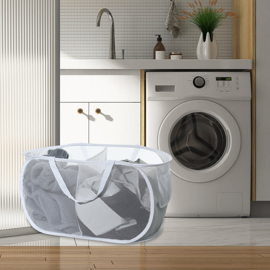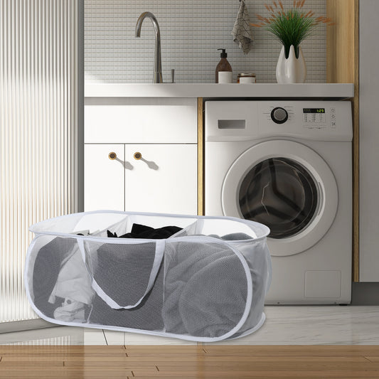 Folding Laundry Basket 2 Compartments Hamper Basket for Bathroom 75L White