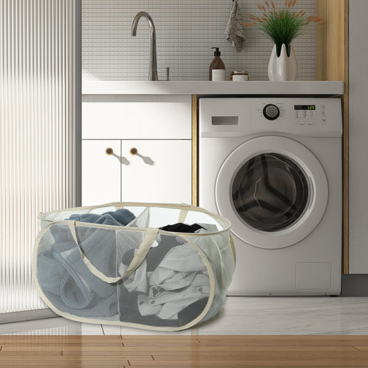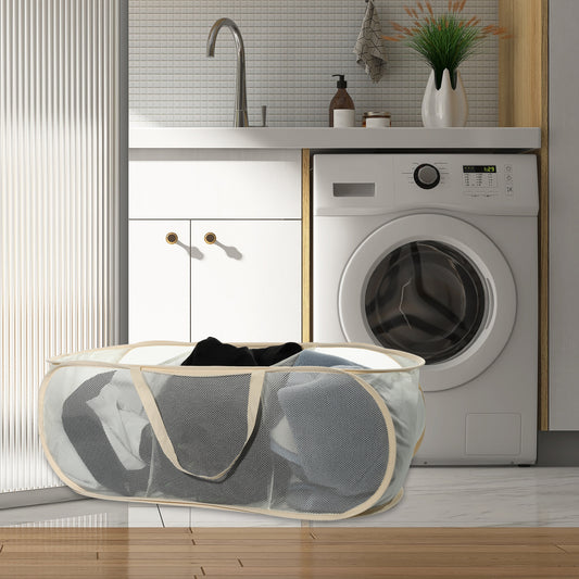Folding Laundry Basket 2 Compartments Hamper Basket for Bathroom 75L Beige