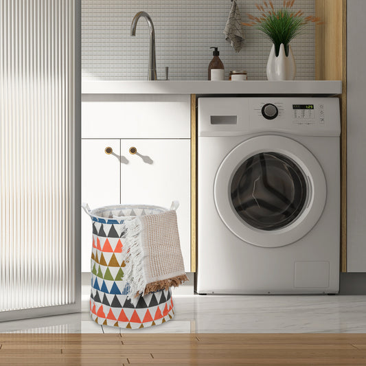 Foldable Cylindrical Laundry Basket for Laundry Room 19.69"x15.75" 60L Black Triangle
