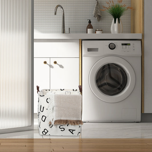 Foldable Square Laundry Basket for Laundry Room 12.60"x12.60"x12.60" 30L Black White Letter