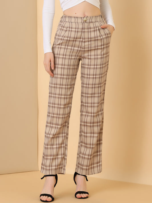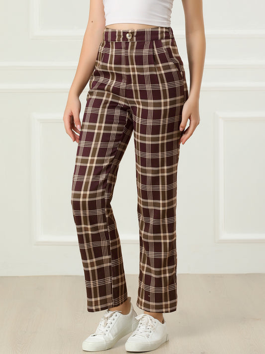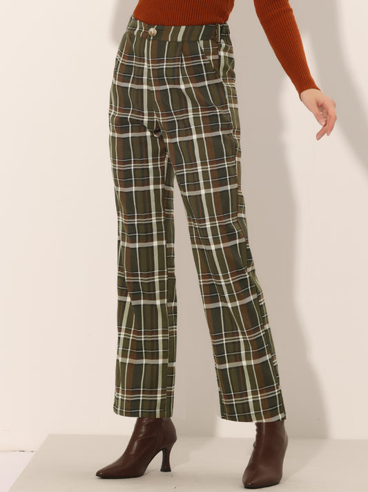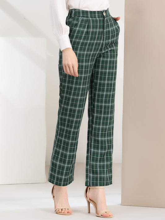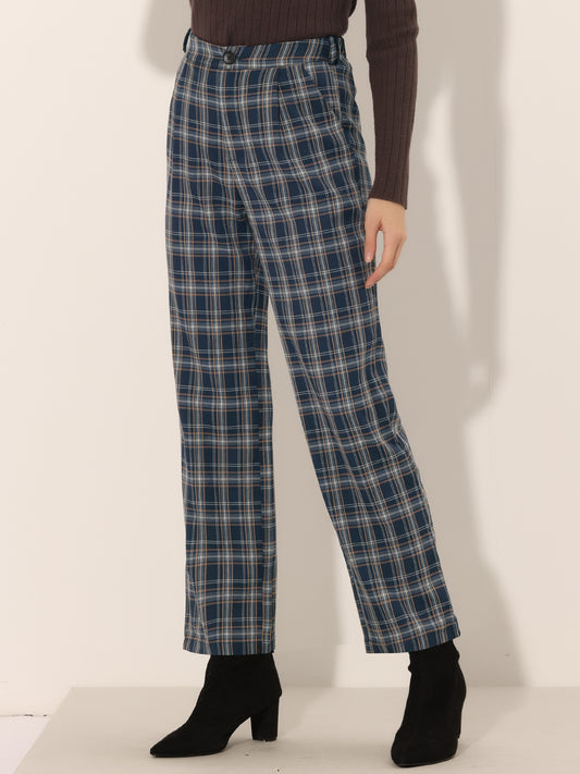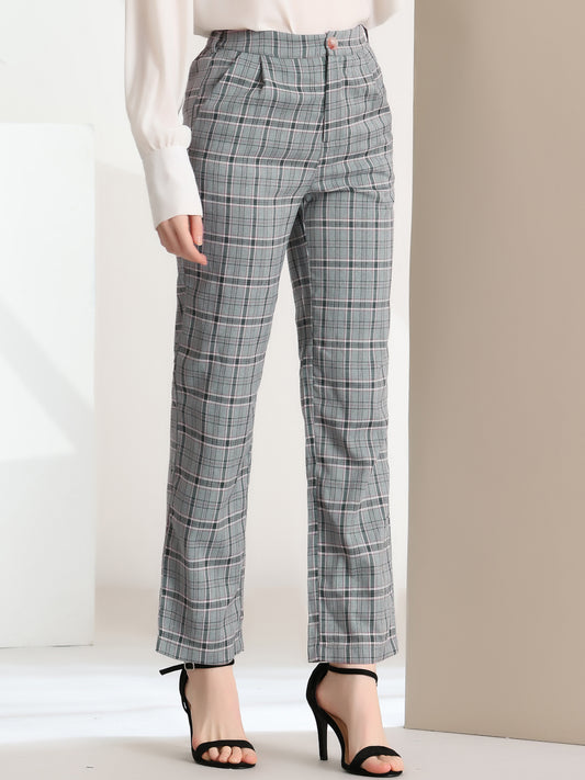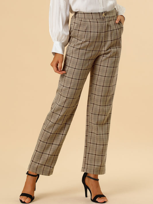 Women's Plaid Work Pant Vintage Houndstooth Tartan Straight Long Trousers