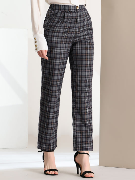 Women's Plaid Pants Elastic Waist Casual Work Office Long Trousers