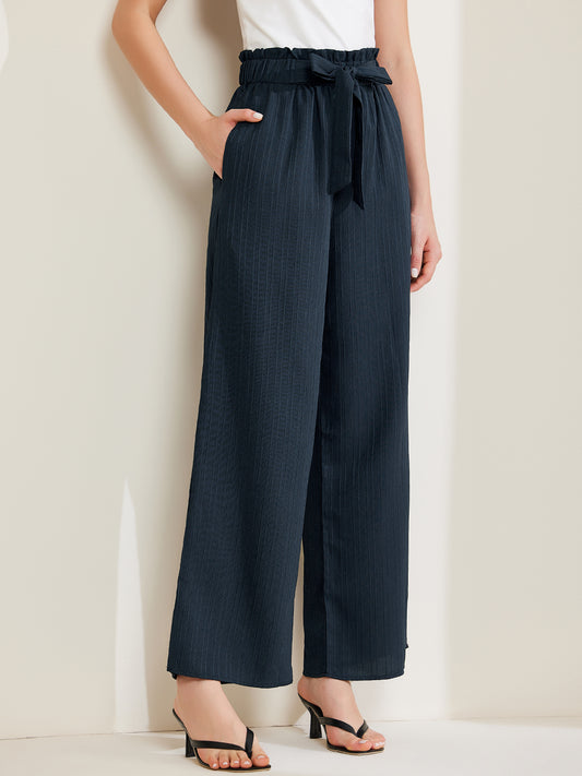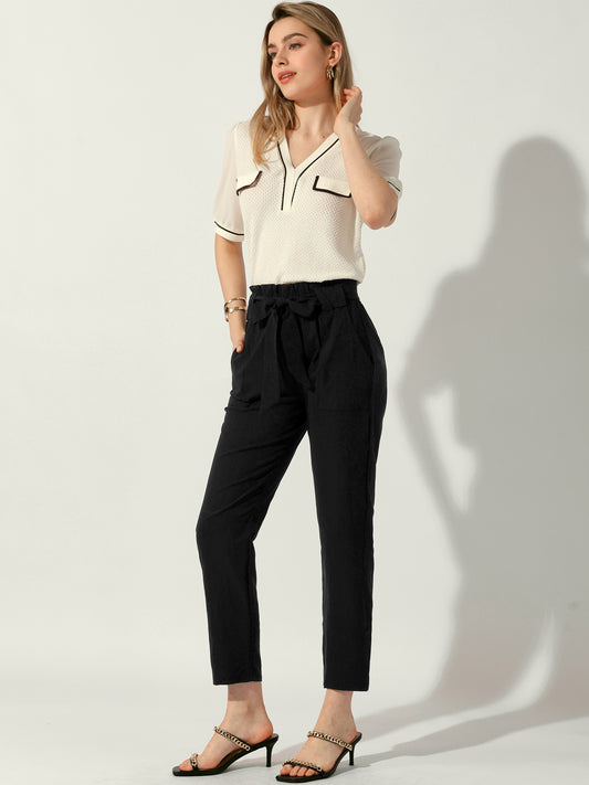 Women's Paper Bag Pants High Waist with Pockets Tie Casual Office Cropped Trousers