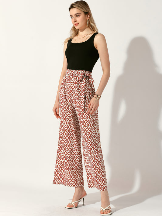 Women's Printed Elastic Tie Waist Summer Boho Wide Leg Long Pants