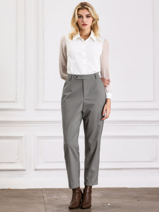 Women's Plaid Work Pant Vintage Houndstooth Tartan Straight Long Trousers