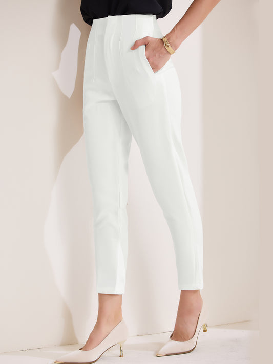 Women's Straight Work Pant Elastic High Waist Business Casual Solid Ankle Pant Trousers