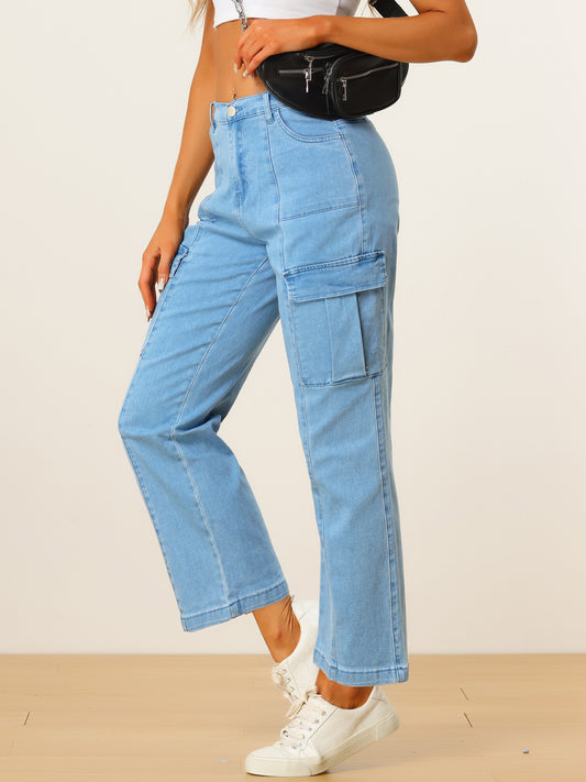 Women's High Waist Denim Trouser Casual Distressed Denim Pants Jeans