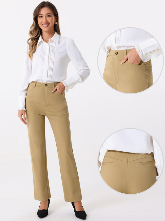 Women's Work Pants High Waist Straight Slacks Yoga Stretch Business Work Trousers