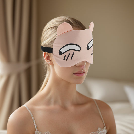 Soft Cartoon Cunning Expression Sleep Mask for Travel Pink