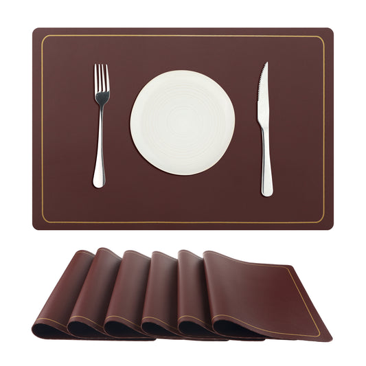 Set of 6 Faux Leather Placemats for Kitchen Dining Table Decor, Washable Wipeable 18*12in