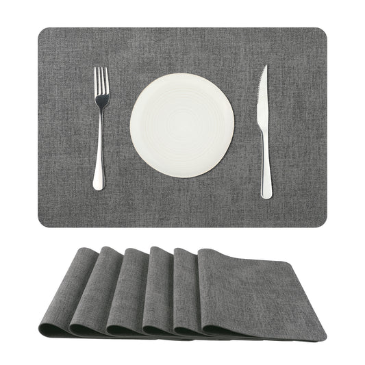 Placemats Set of 6 Faux Leather for Kitchen Dining Table Decor, Easy to Clean 17*12in