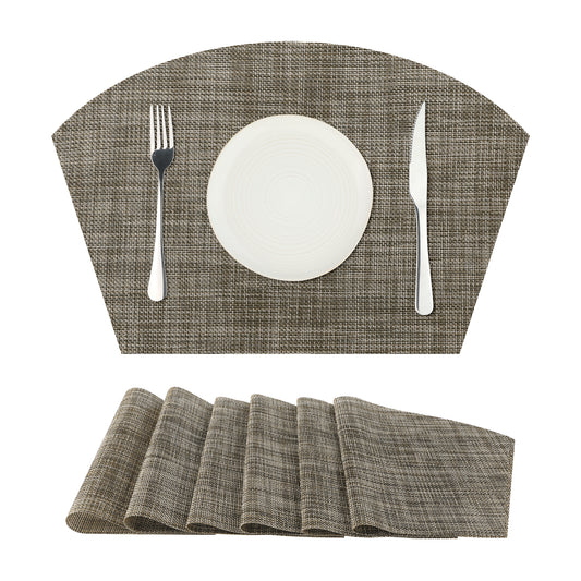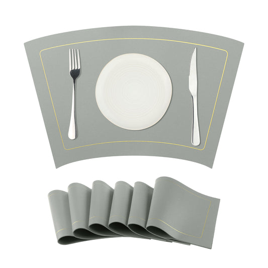 Round Table Placemats, Set of 6 Wedge Faux Leather Heat Resistant 20*12in