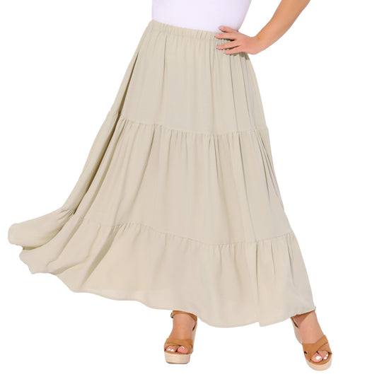 Women's Plus Size Swing Maxi Skirt Elastic High Waist Boho Flowy Casual Aline Long Beach Skirts