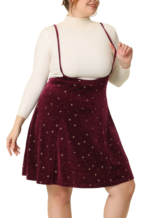 Women Plus Size Velvet Skater Skirts Flared Gilding Metallic Shiny Star Suspender Braces Skirt