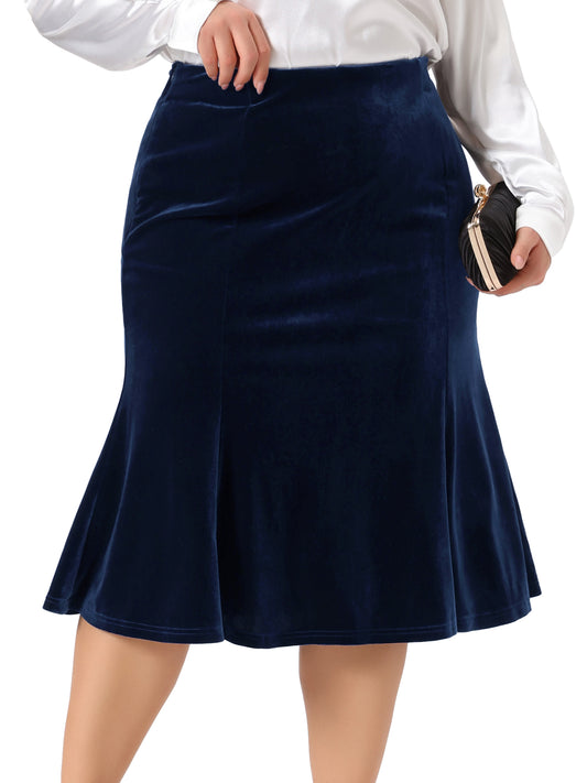 Women Plus Size Skirts Feminine Chic Retro Elastic Waist Velvet Fishtail Mermaid Bodycon Skirt