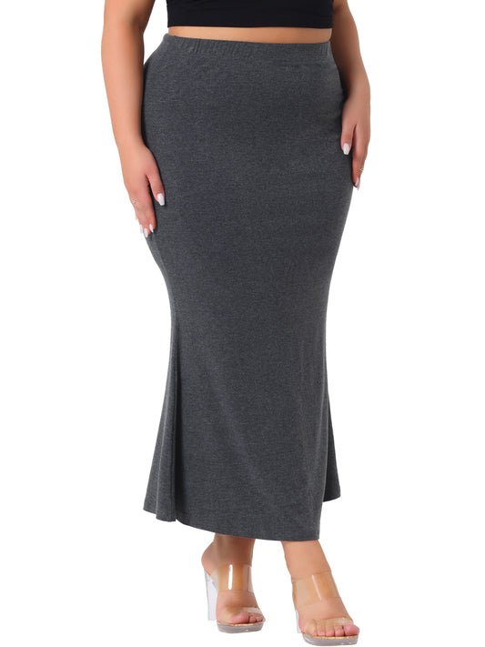 Women Plus Size Skirt Pack Mermaid High Waist Knit Bodycon Long Skirts