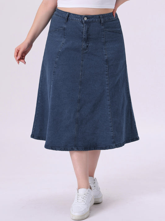 Women's Plus Size Denim Skirts Vintage High Waist with Pockets A-Line Midi Jean Skirt