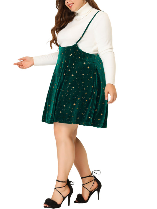 Women Plus Size Velvet Skater Skirts Flared Gilding Metallic Shiny Star Suspender Braces Skirt