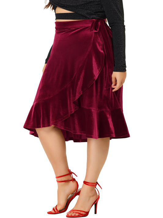 Women Plus Size Skirt Party Cocktail Ruffled Hem Velvet Wrap Retro Skirt