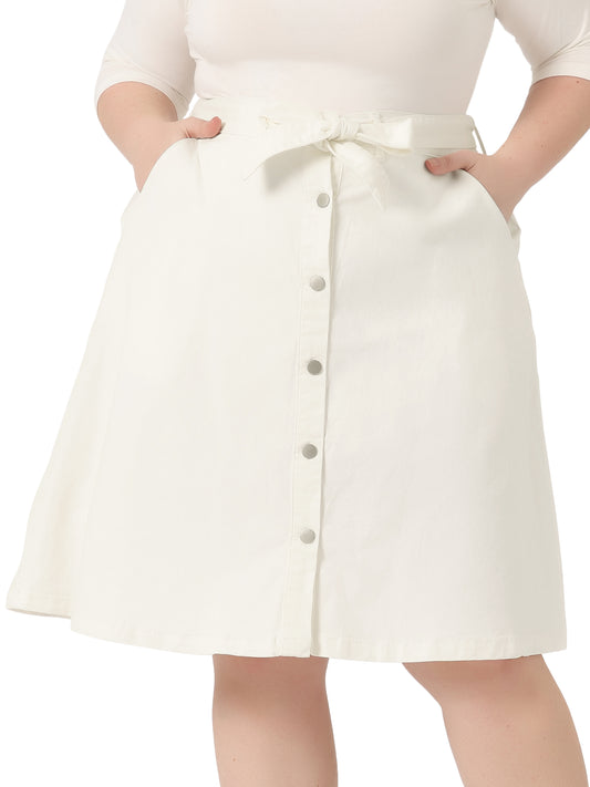 Women's Plus Size Denim Skirts Tie Waist A-Line with Pockets Midi Summer Jeans Skirt