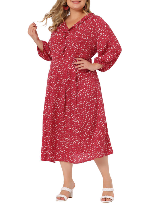 Women Plus Size Dress Casual 3/4 Sleeve Sweetheart Print Midi Ruffle Dress