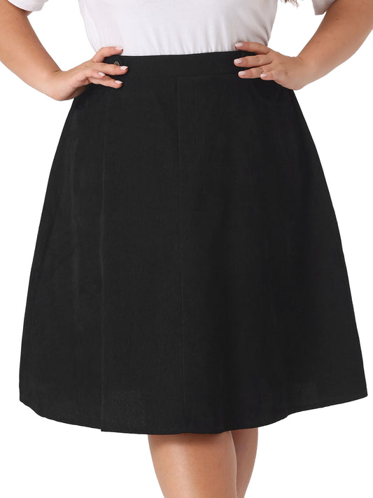 Women Plus Size Corduroy Midi Skirts Elastic High Waist Button Front A-Line Skirt with Pockets