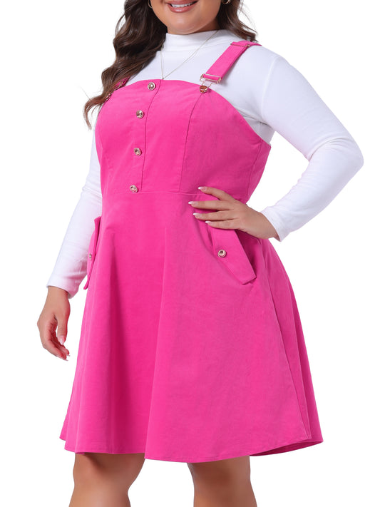 Women Plus Size Corduroy Pinafore Short Dress Adjustable Strap Overall Dress Suspender Skirt