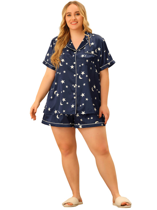 Women Plus Size Pajama Set Short Sleeve Button Shirt and Shorts 2 Pcs Loungewear