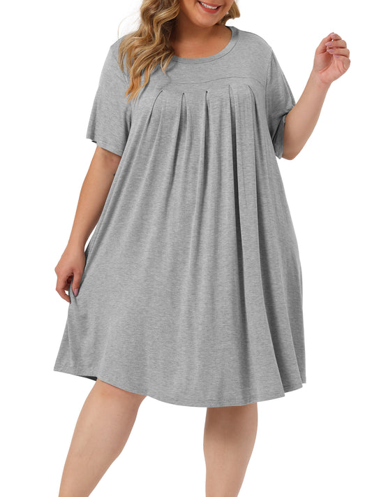 Women Plus Size Nightgown Short Sleeve Round Neck Pajama Nightshirt