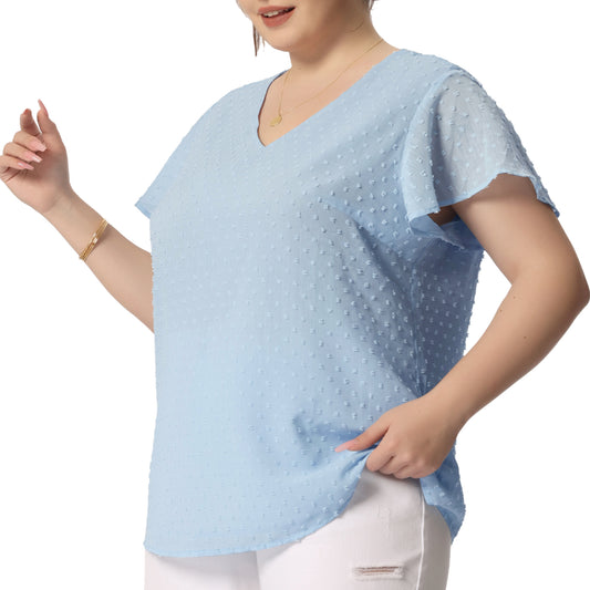 Women Plus Size Swiss Dots Blouse V Neck Summer Short Sleeve Casual Top