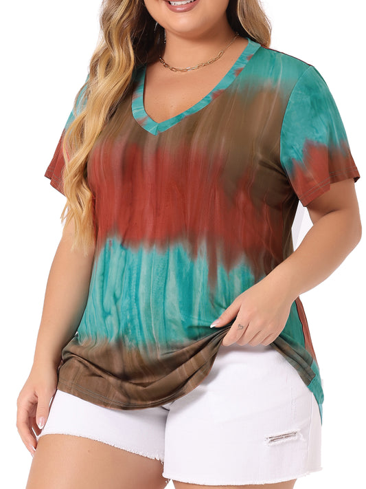 Women's Plus Size Summer Top V Neck Short Sleeve Casual Tie Dye