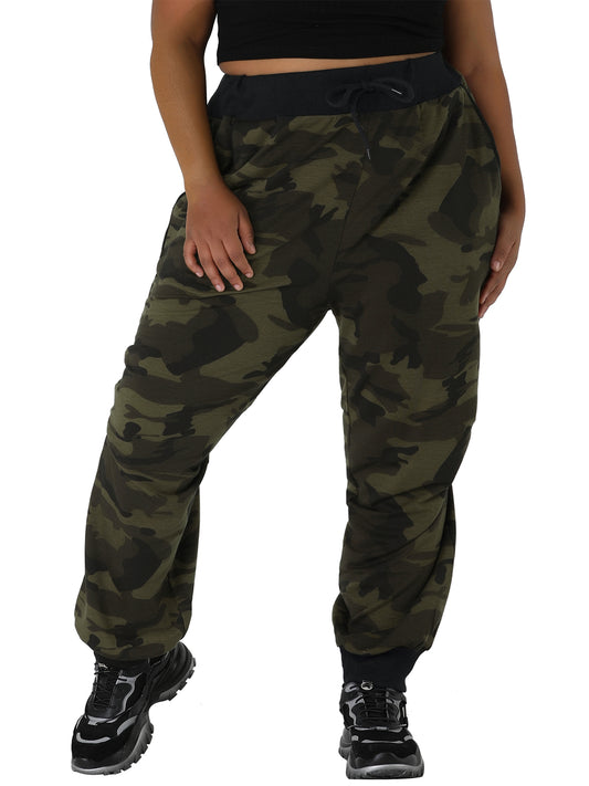 Women Plus Size Drawstring Waist Contrast Color Jogger Pants