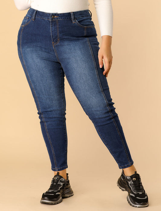 Women's Plus Size Jeans Mid Rise Stretch Washed Skinny Jeans Casual Denim Jeggings