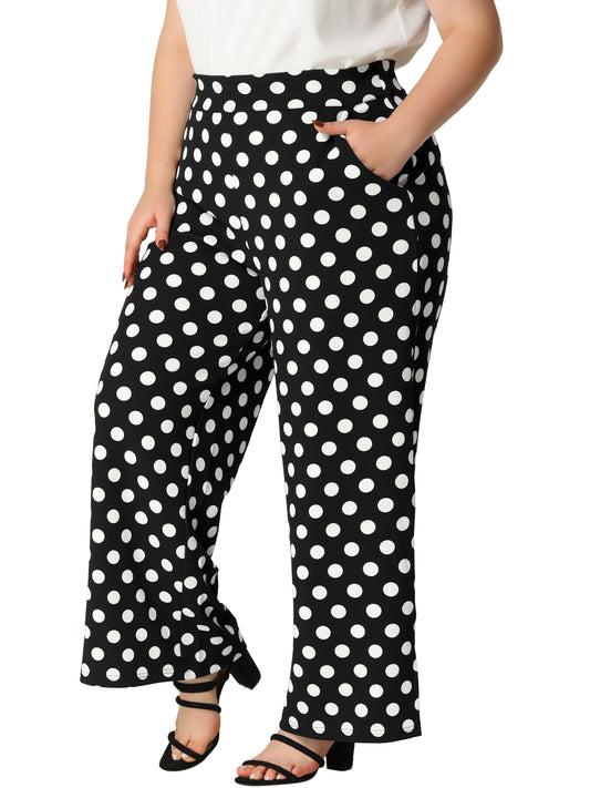 Women's Plus Size Summer Palazzo Pants Stretchy High Waist Polka Dots Casual Wide Leg Pants