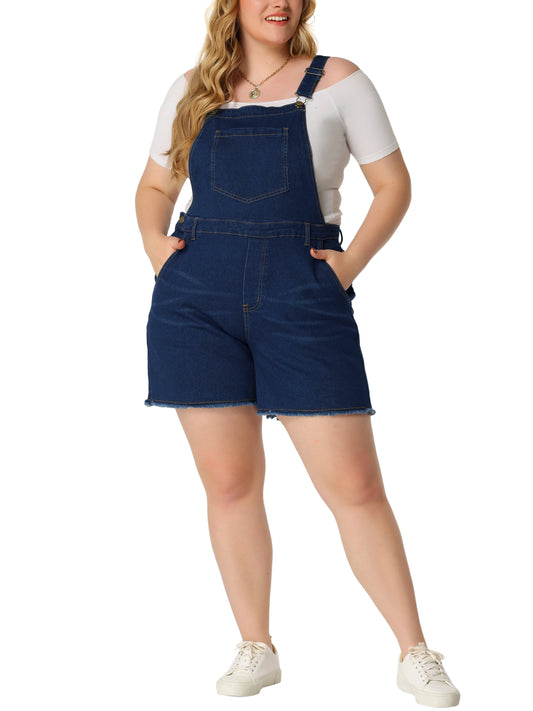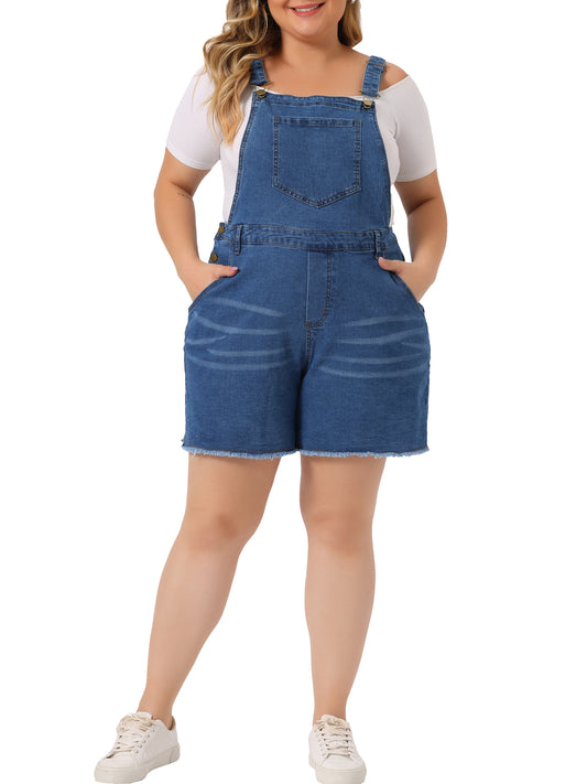 Women Plus Size Denim Overall Shorts Raw Hem Adjustable Strap Rompers with Pockets Bib Jeans Shortalls