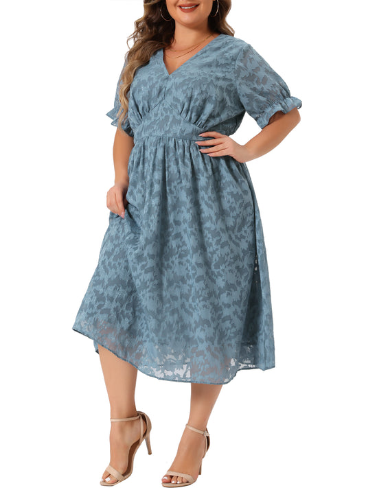 Women Plus Size Dress Casual V Neck Bubble Short Sleeve Semi Sheer Swing Flowy Summer Dresses