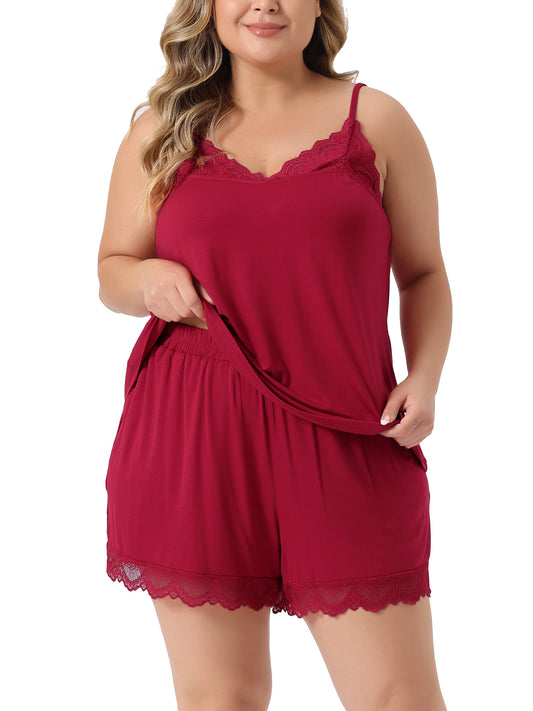 Women Plus Size Pajama Lace Chemise Shorts Set Nightwear Sleepwear Lounge Set