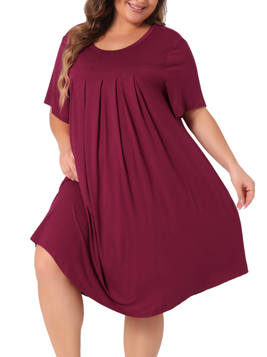 Women Plus Size Nightgown Short Sleeve Round Neck Pajama Nightshirt