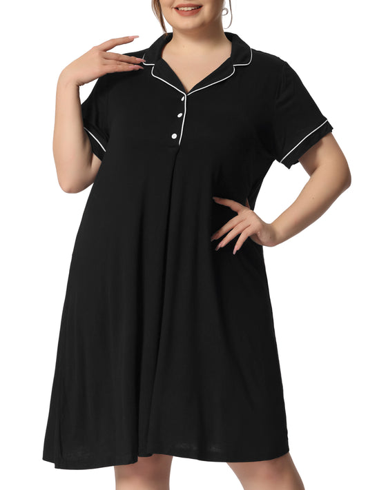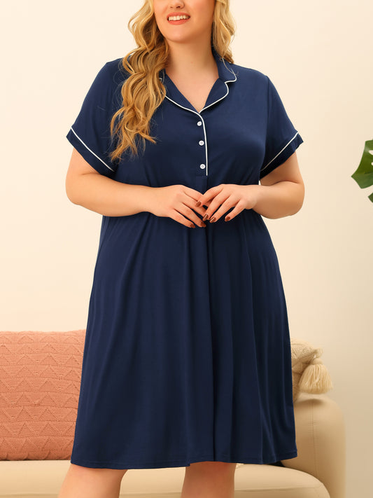 Women Plus Size Sleep Shirt Short Sleeves Pajama Button Down Nightgown Nightdress Sleepwear