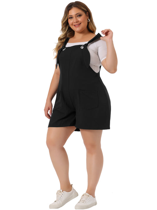 Women's Plus Size Sleeveless Square Neck Tie Shoulder Romper Shorts