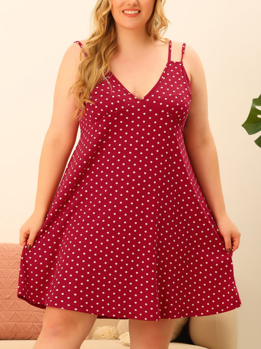 Women Plus Size Nightgowns Polka Dots Nightshirt Tank Cami Lingerie Chemises Sleepwear Pajamas