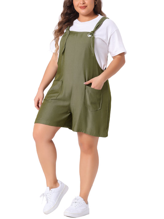 Women's Plus Size Sleeveless Square Neck Tie Shoulder Romper Shorts