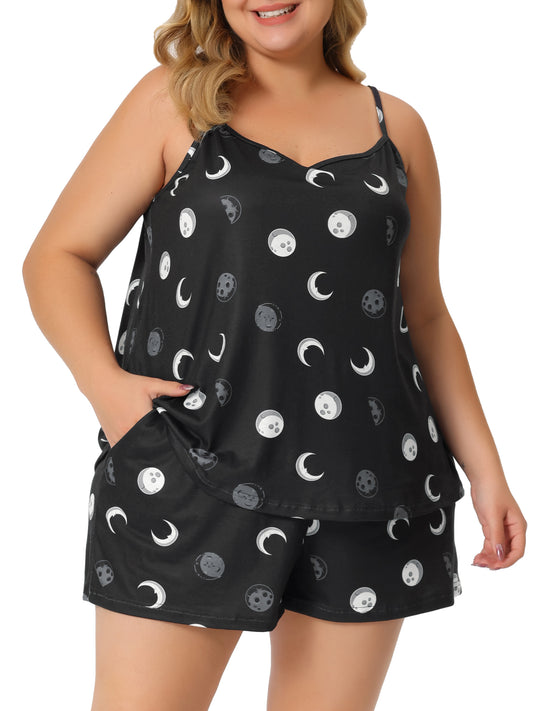 Women Plus Size Pajama Set Lingerie Sleepwear 2 Piece Cami Shorts Set V Neck Pj Sleepwear