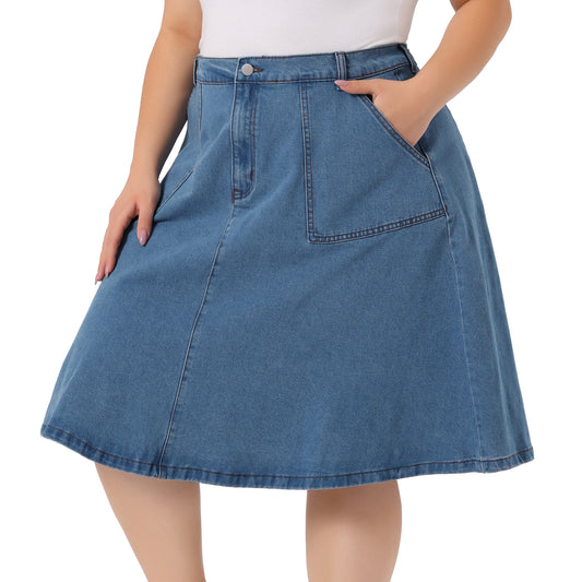 Women Plus Size Denim Skirt Casual A Line Pockets Midi Skirt