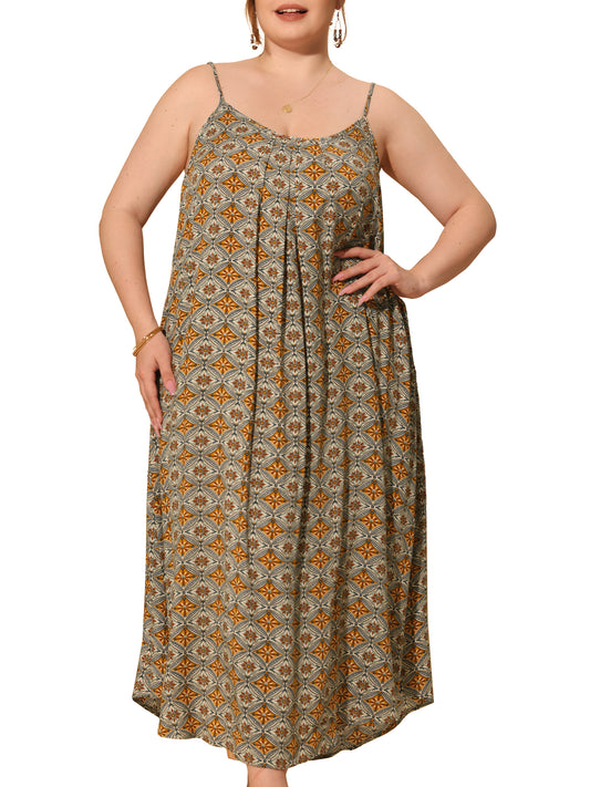 Women's Plus Size Dresses Bohemian Spaghetti Straps Summer Long Maxi Beach Dress
