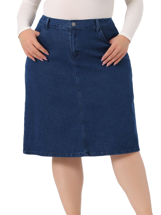 Women Plus Size Jean Skirt Classic Basic 4-Pocket Denim Pencil Skirt with Slit