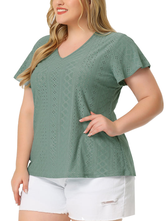 Women's Plus Size Summer Tee V Neck Hollow Flare Short Sleeve Casual Top Tunic