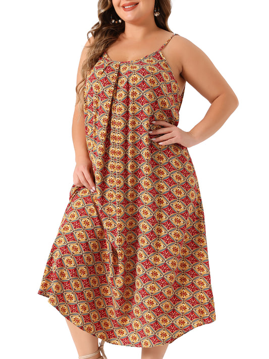 Women's Plus Size Dresses Bohemian Spaghetti Straps Summer Long Maxi Beach Dress