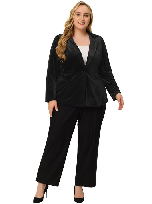 Women Plus Size Velvet Blazers Jackets Casual Lapel Suit Office Work Blazer