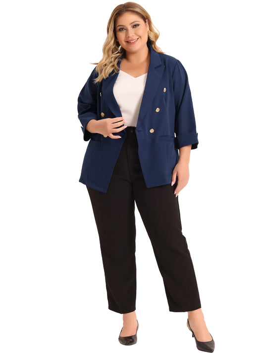 Women Plus Size Business Suit Blazer Office Work Button 3/4 Sleeve Black Blazers Jackets